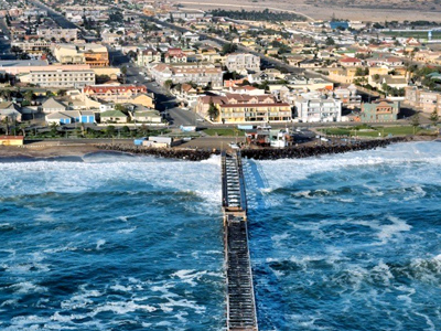 A description of the coastal town in the Namib Desert. This informational piece highlights the intersection of extreme desert landscapes and Atlantic coastal climates.